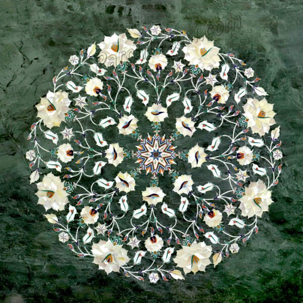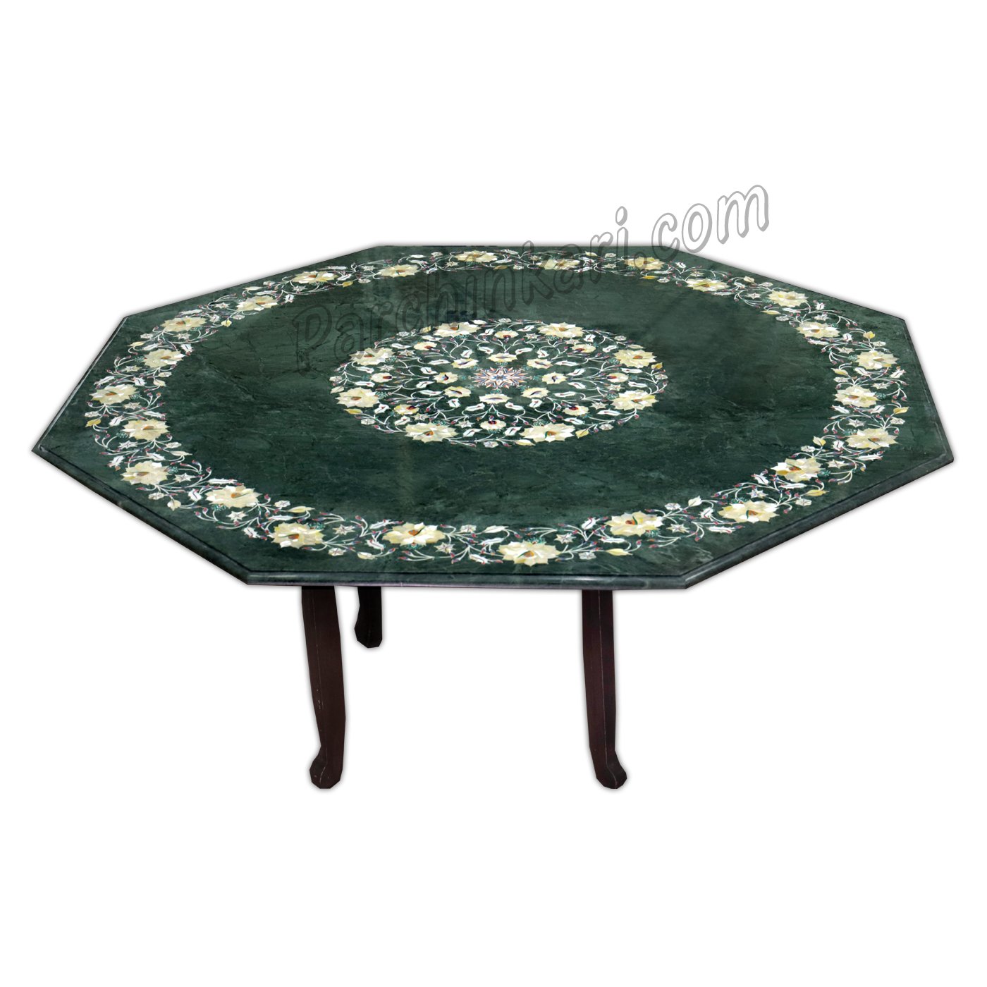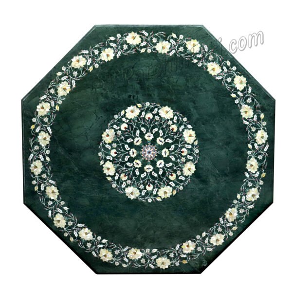 This Green Marble Inlay Art Table inlaid with Flower Art.