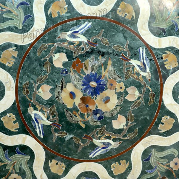 Green Marble Inlay Art Table Tops in 150cm X 150cm