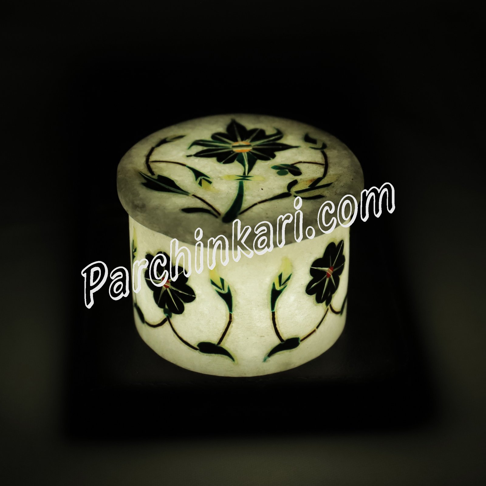This Round white marble inlaid box can be utilized for gems stockpiling and likewise can be utilized for design on the end table and dressing table. This antique gems box enlightens if the light arrangement(Battery LED) is made under the container as should be obvious the magnificence of light brightening in the photos of the crate. Your important bits of adornments would now be able to be set in a lovely box that will upgrade the estimation of the gems and give it the regard it merits. The adaptable antique box might be utilized as a little gems box and memento box or introduction box.