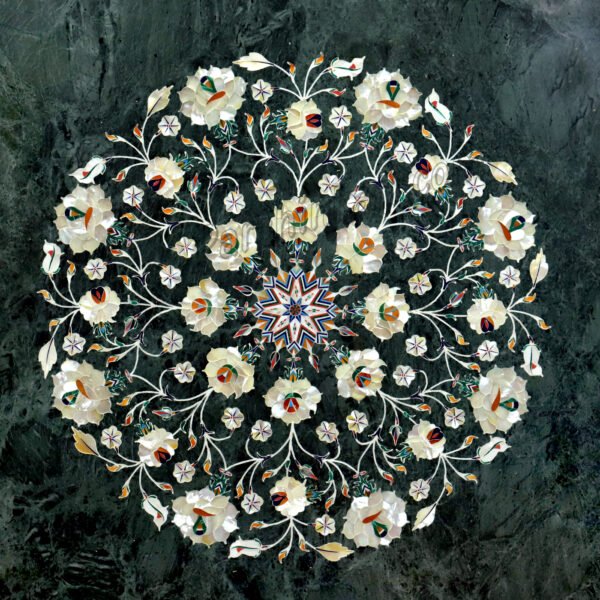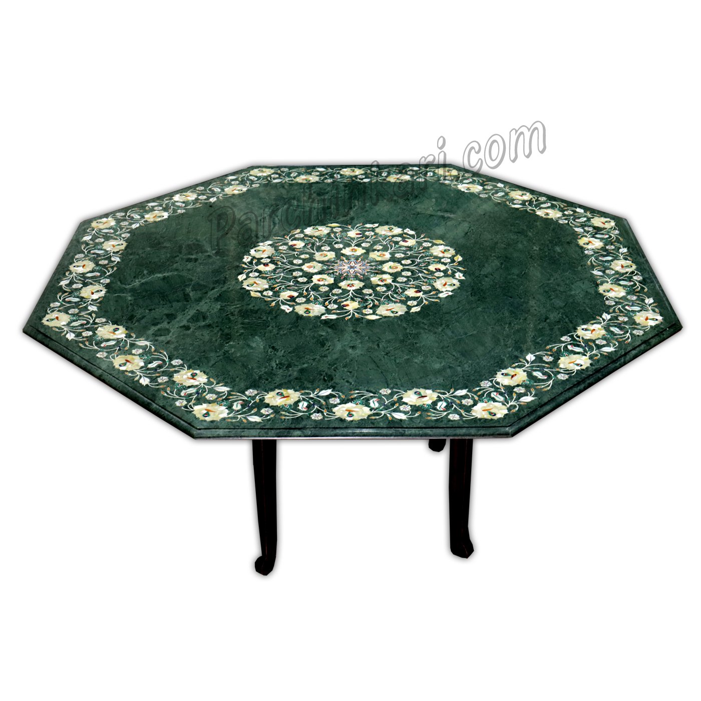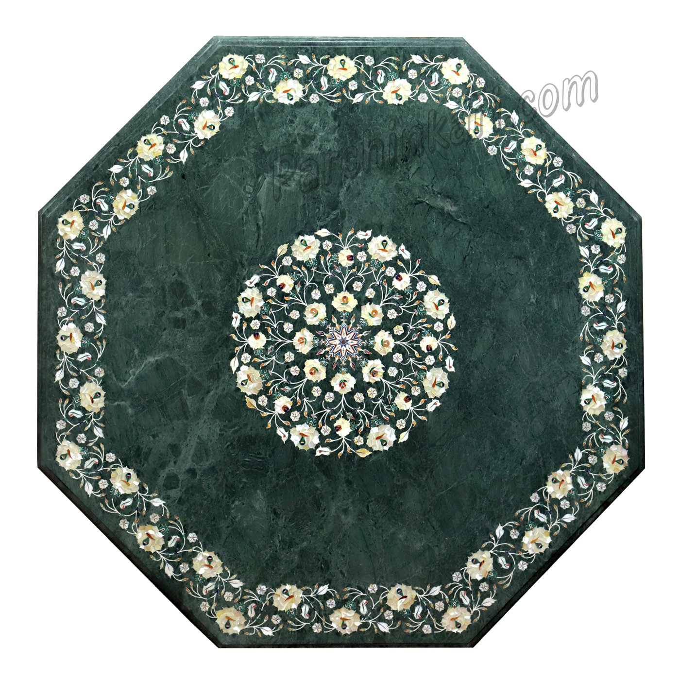 This Green Marble Inlay Art Table inlaid with Flower Art.
