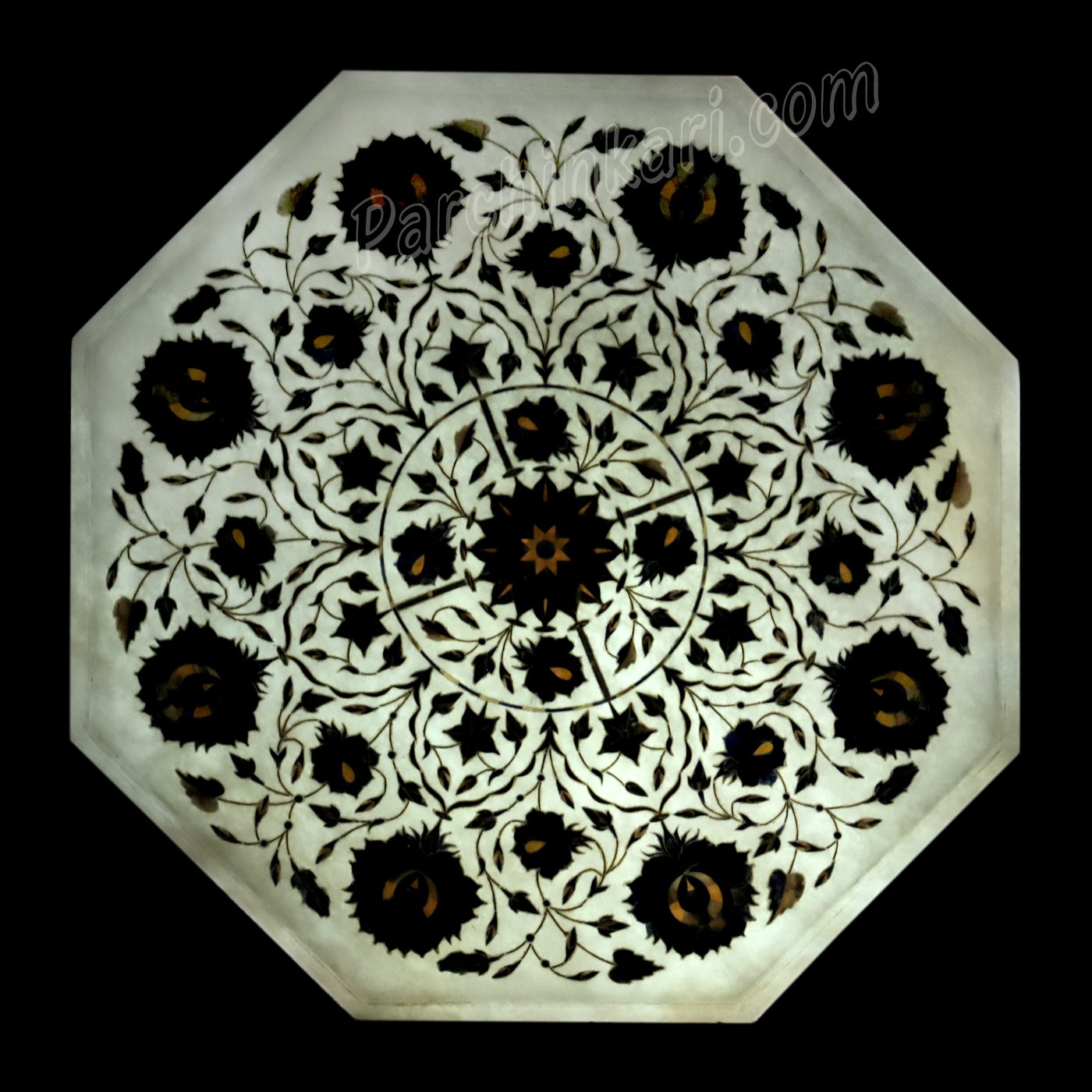 The unique quality of the white marble that it is translucent with the light, you can make the arrangement of the light under the tabletop and it will translucent with the light.