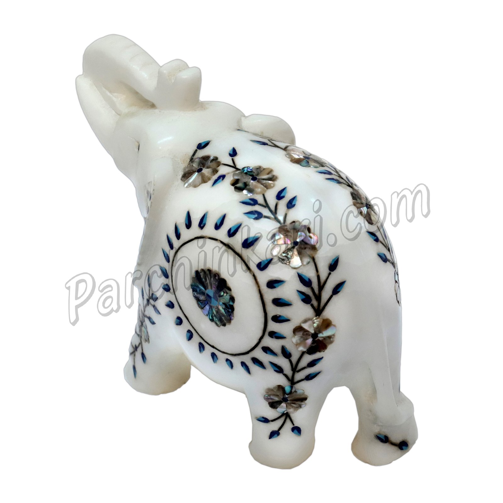 This White Marble Elephant Figurine is completely Handcrafted. This Inlaid Art was done very Carefully in this white Marble Elephant Figure. This excellent piece is Carved or Made by the Best craftsman in a similar style and procedure as The Magnificent Taj Mahal’s Inlay Art